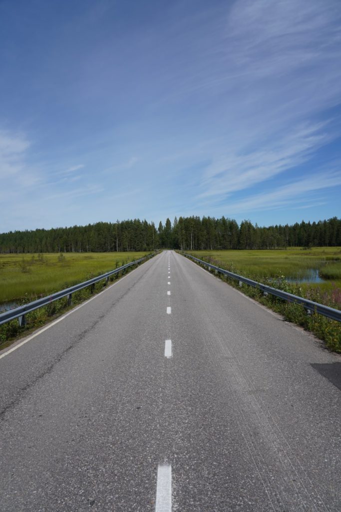 Auch in Oulu fand ich keinen Grund einen zweiten Ruhetag einzulegen und machte mich sogleich weiter auf nach Norden. Die anfängliche Fahrt bis einiges über die Stadtgrenzen hinaus war dank des super Wetters und den guten Radwegen eine Freude. Bis die Radwege endeten und es für gut die Hälfte des Tages auf der Autostrasse weiter ging. Teils sogar zweispurig und an anderen Orten mit Baustelle. Die Freude ist dann plötzlich der Motivation zum Ankommen gewichen.