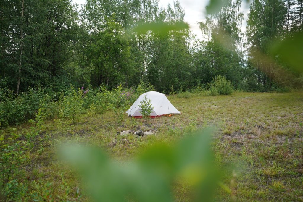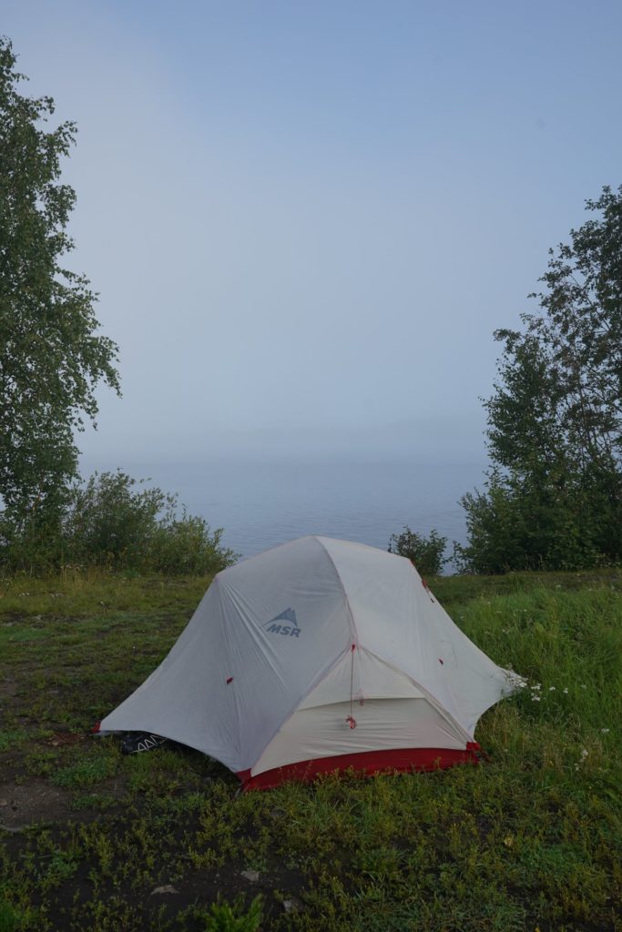 Erstaunt über die wenigen Mückenstiche, der Antimückensrpay scheint zu wirken, wachte ich am nächsten Morgen pünktlich auf. Es ist schon sehr gemütlich, wenn man morgens nicht das gesamte Zelt abbauen und zusammenpacken muss.