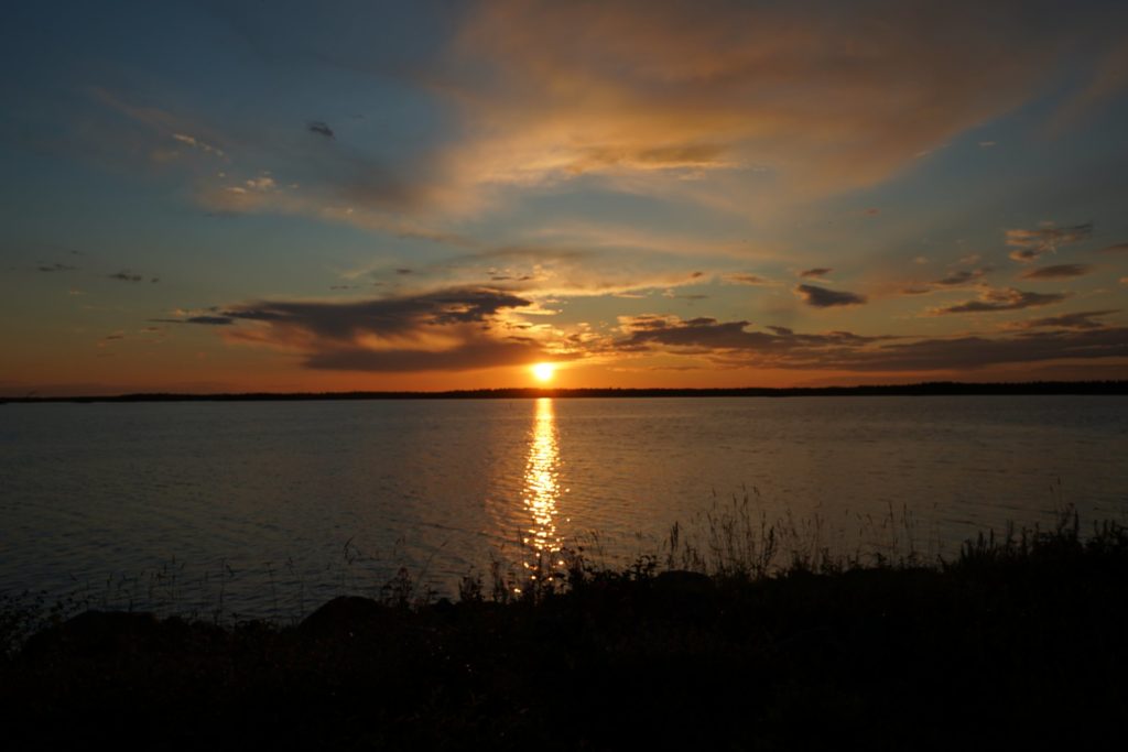 Auch an diesem Abend bot sich mir ein wunderbarer Sonnenuntergang. Mittlerweile habe ich es komplett aufgegeben die nächtliche Zeit zu schätzen. Es ist unmöglich. Der Sonnenuntergang beginnt um 9:30 Uhr Abends. Bis die goldene Stunde (die orange Farbe am Himmel) verschwindet, sind locker zwei weitere Stunden vergangen. Richtig dunkel wird es quasi nicht und morgens um drei ist der Himmel bereits vom Sonnenaufgang wieder orange eingefärbt.