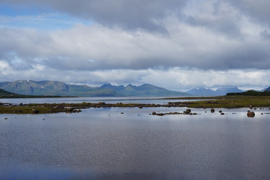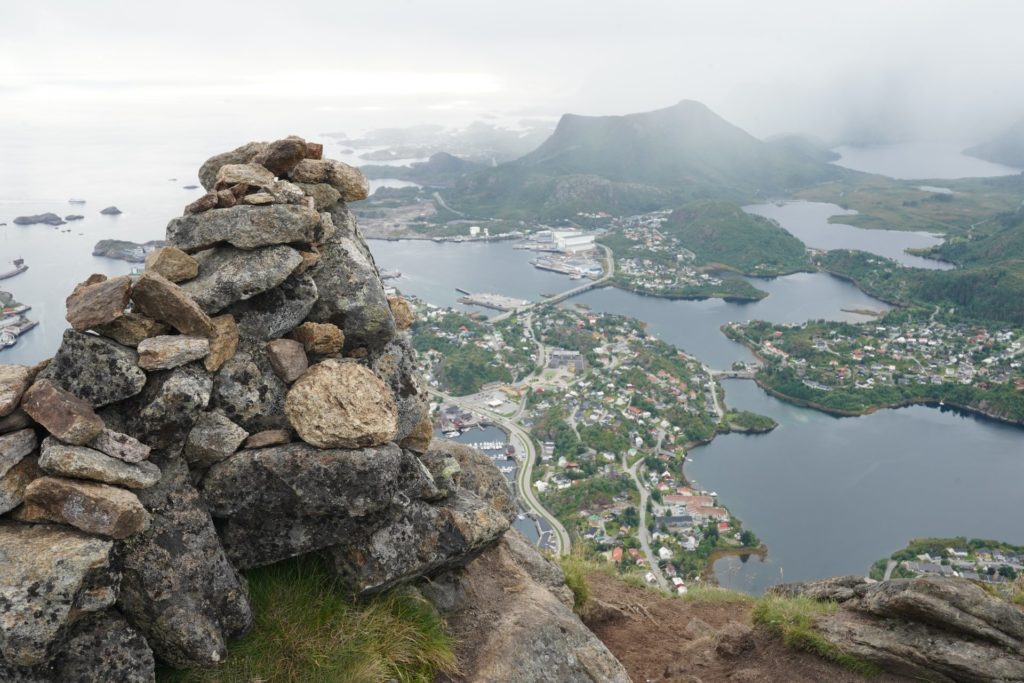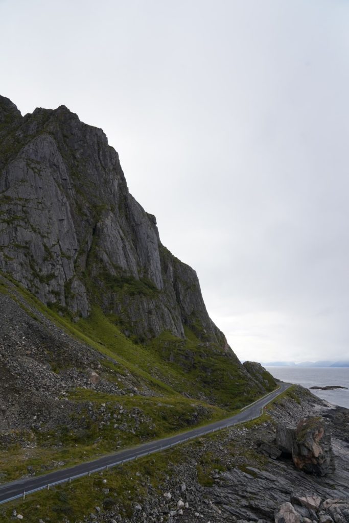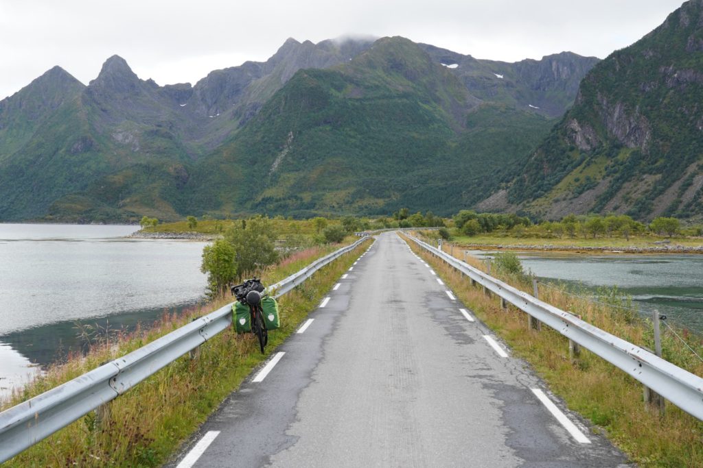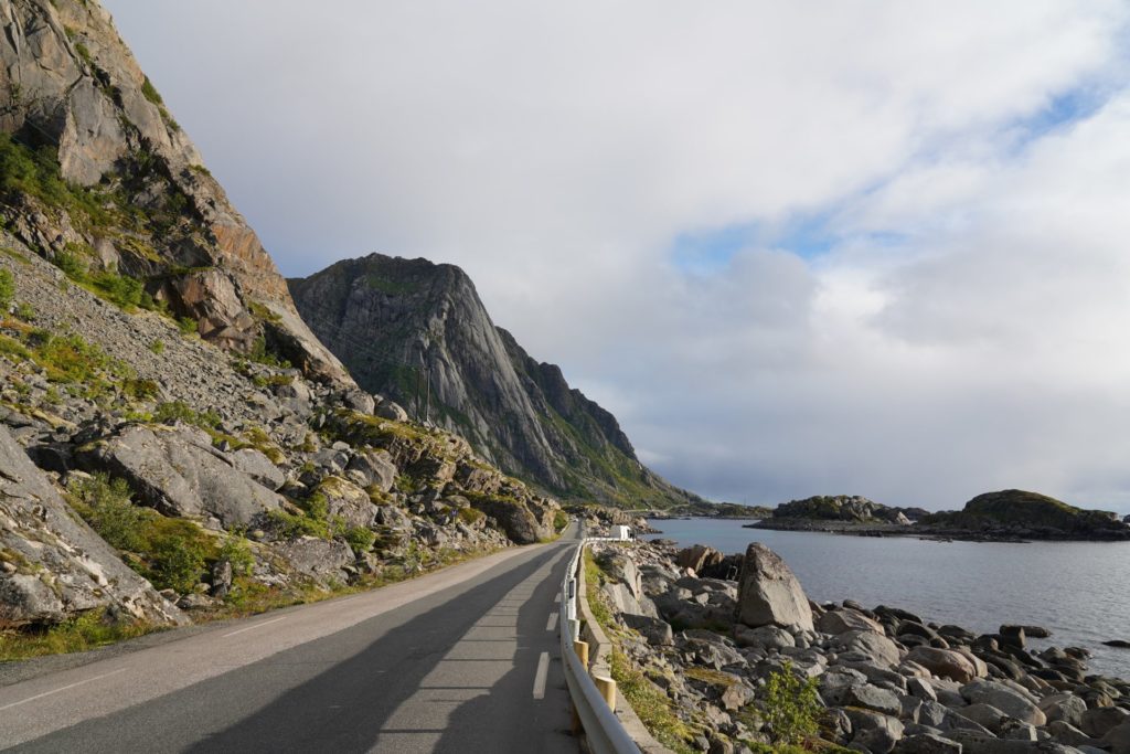 Einige Sätze später schwang ich mich auf mein Rad und machte mich auf nach Svolvær für eine Wanderung. Leider führte mich die Route erneut auf die Haupstrasse und die Kilometer waren durch die vorbeirauschenden Autos nicht besonders spannend. Zur Mittagszeit in Svolvær angekommen, machte ich mich nach dem Essen bereit für meine erste Wanderung auf den Lofoten.