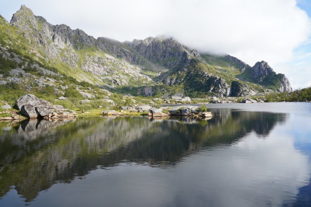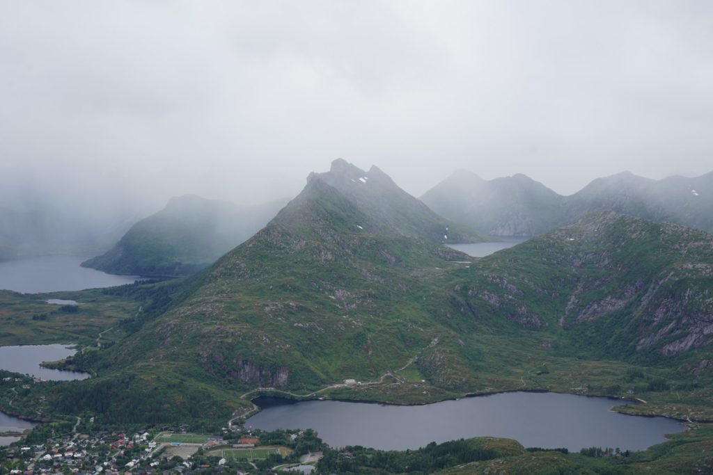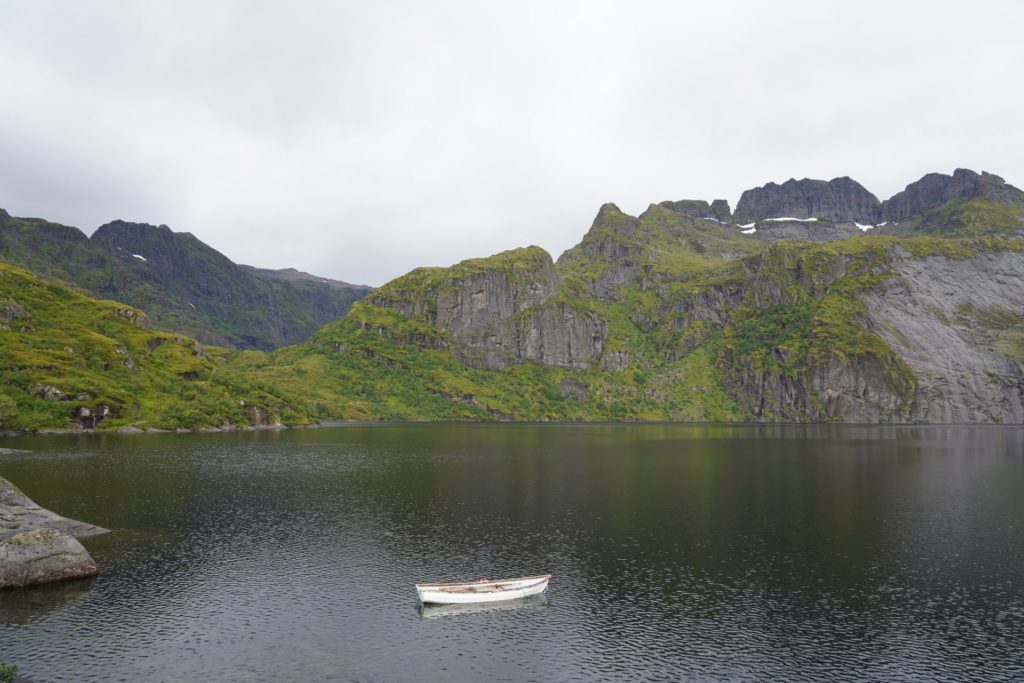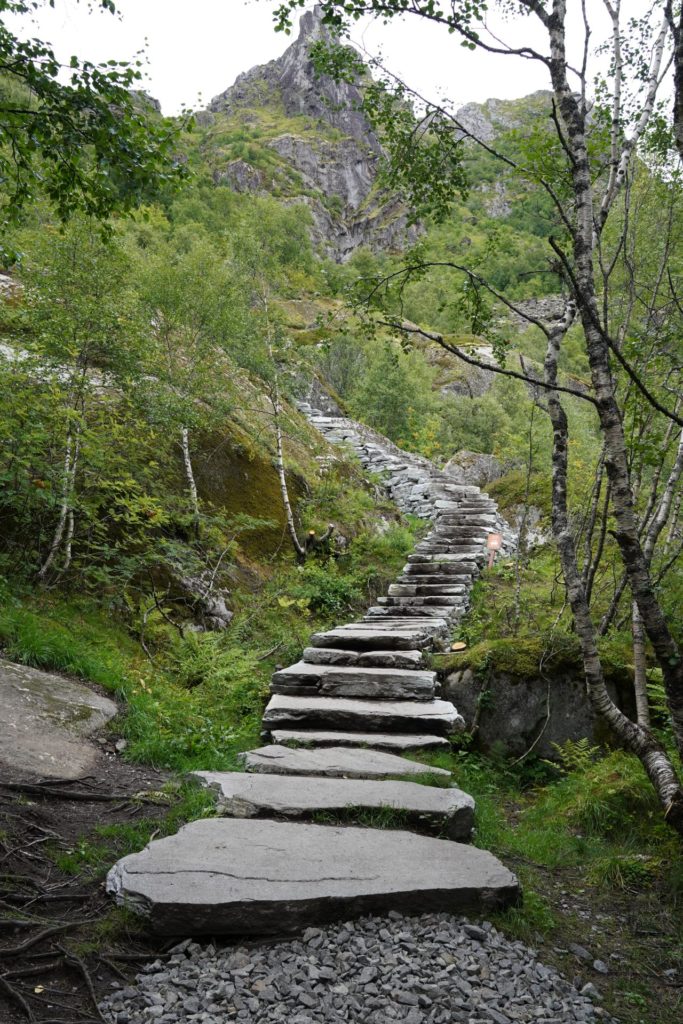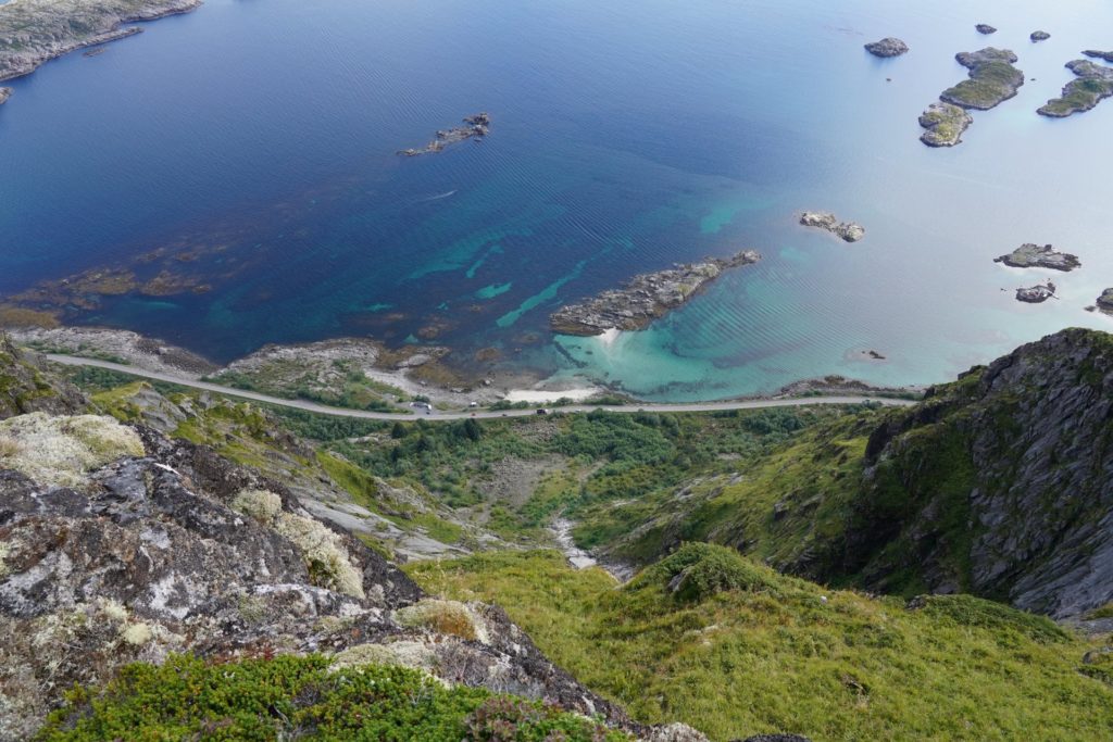 Einige Sätze später schwang ich mich auf mein Rad und machte mich auf nach Svolvær für eine Wanderung. Leider führte mich die Route erneut auf die Haupstrasse und die Kilometer waren durch die vorbeirauschenden Autos nicht besonders spannend. Zur Mittagszeit in Svolvær angekommen, machte ich mich nach dem Essen bereit für meine erste Wanderung auf den Lofoten.