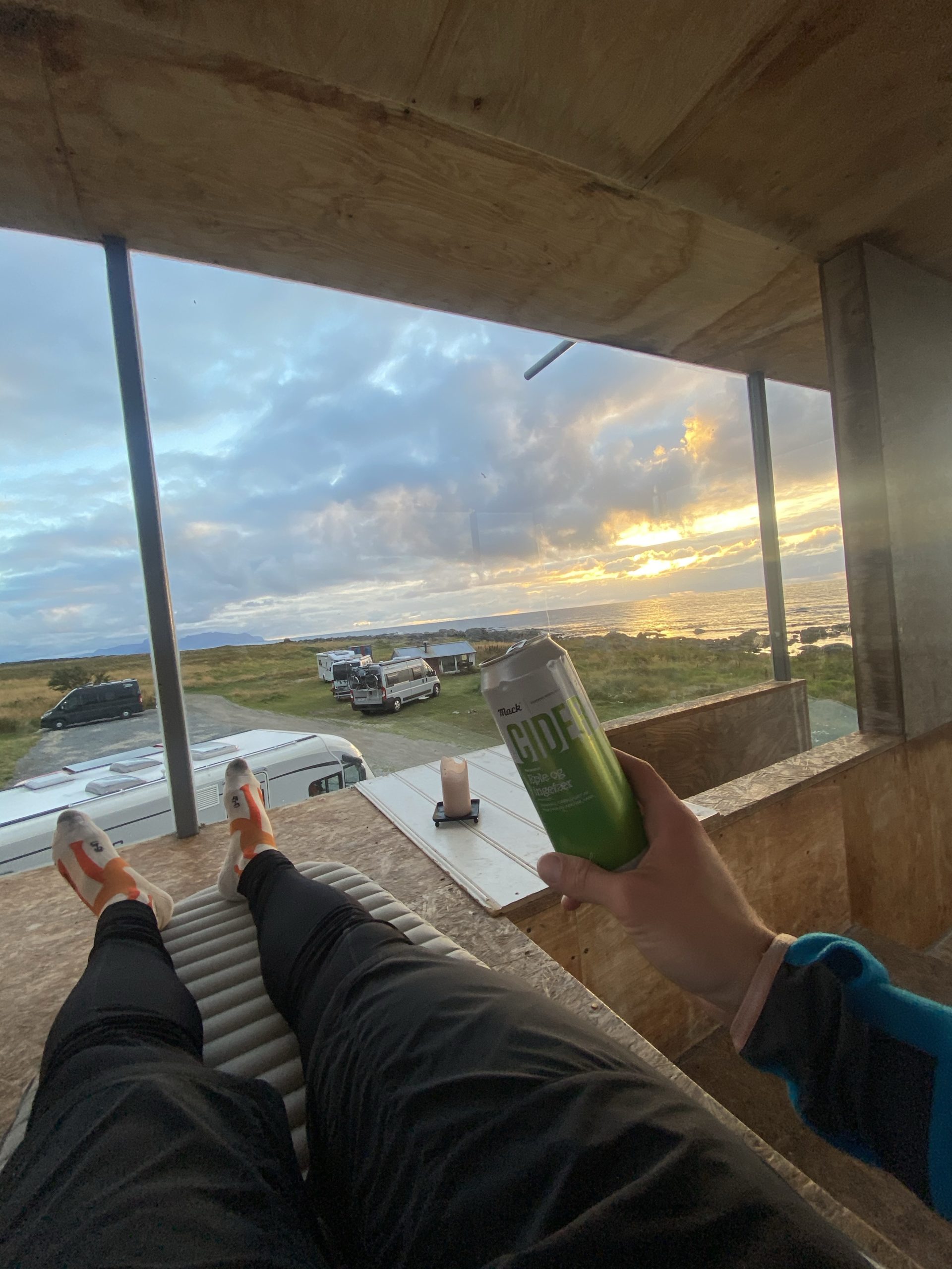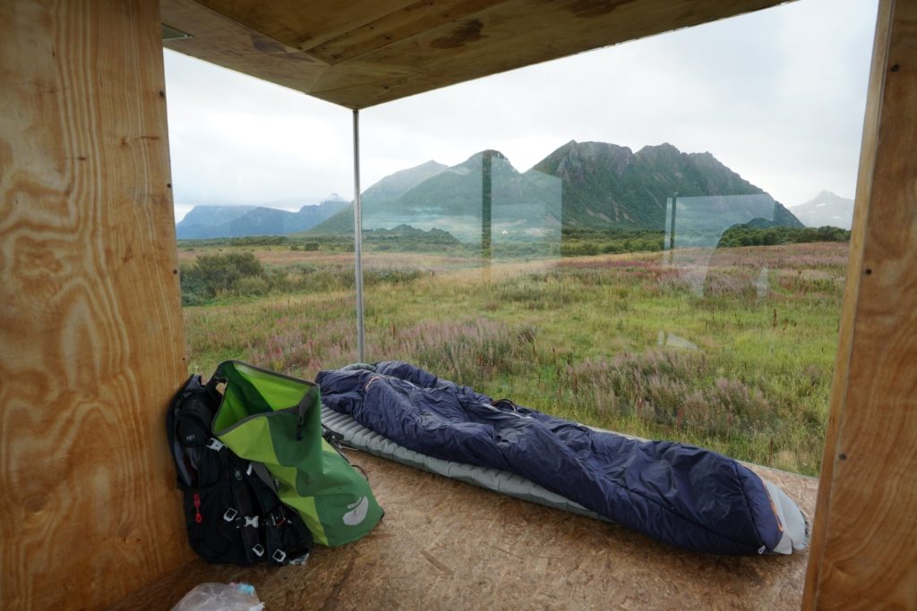 Stellt euch vor ihr wacht in Mitten der Nacht auf und um euch herum seht ihr Meer und Berge. Da der komplette obere Teil des Shelters verglast ist, war das genau so und ich schlief hervorragend.