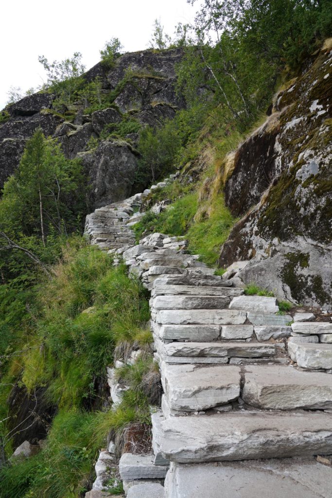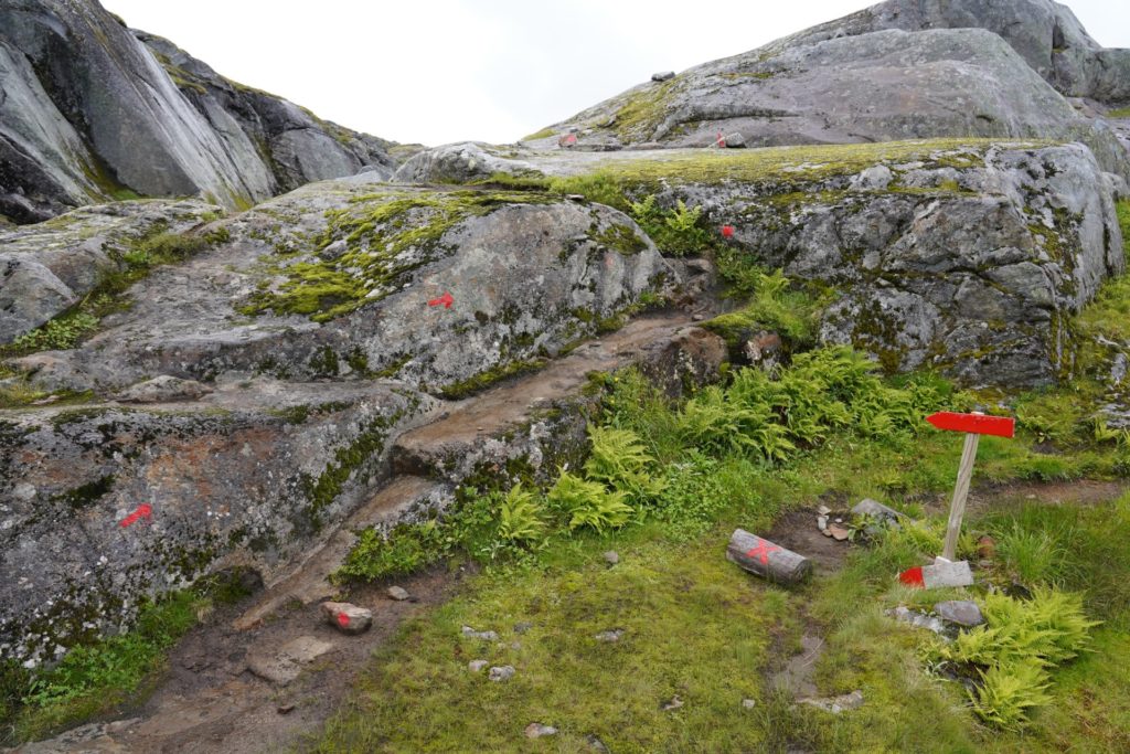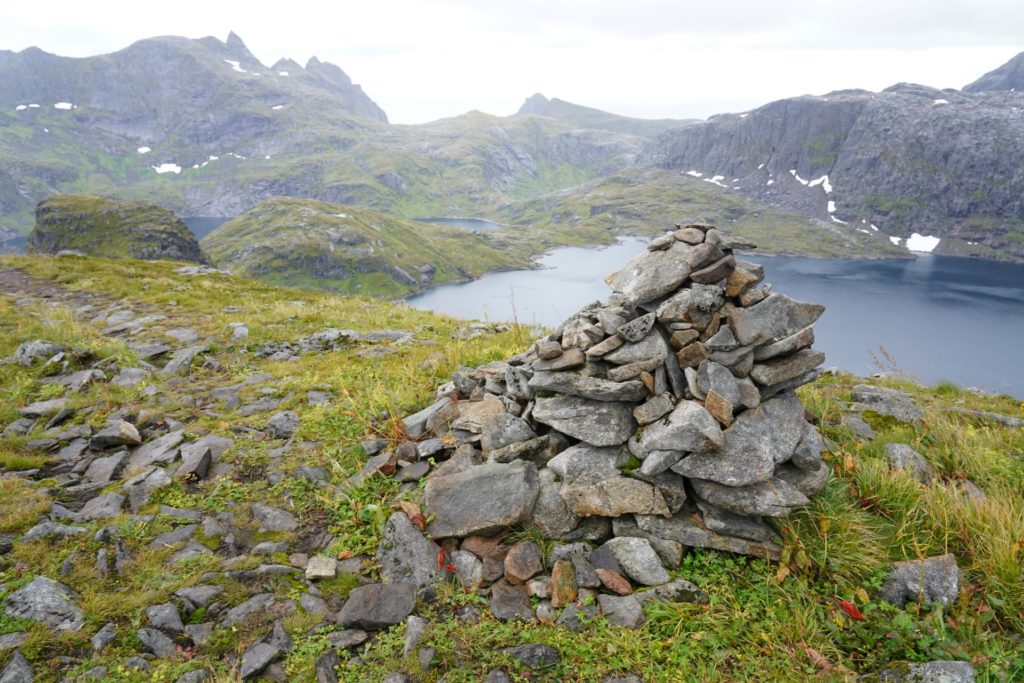 Beim Frühstück machte sich sogar die Sonne bemerkbar und ich durfte, wenigsten für ein Mal, mein Zelt nicht nass zusammenpacken. Der Start der geplanten Wanderung war nur wenige Meter neben meinem Zeltplatz und ich machte mich sogleich auf den Weg. Bereits auf den ersten Metern war der Weg nicht mehr wirklich zu sehen, da es zwischen dutzenden grossen Steinen hindurch ging.