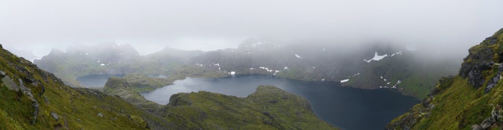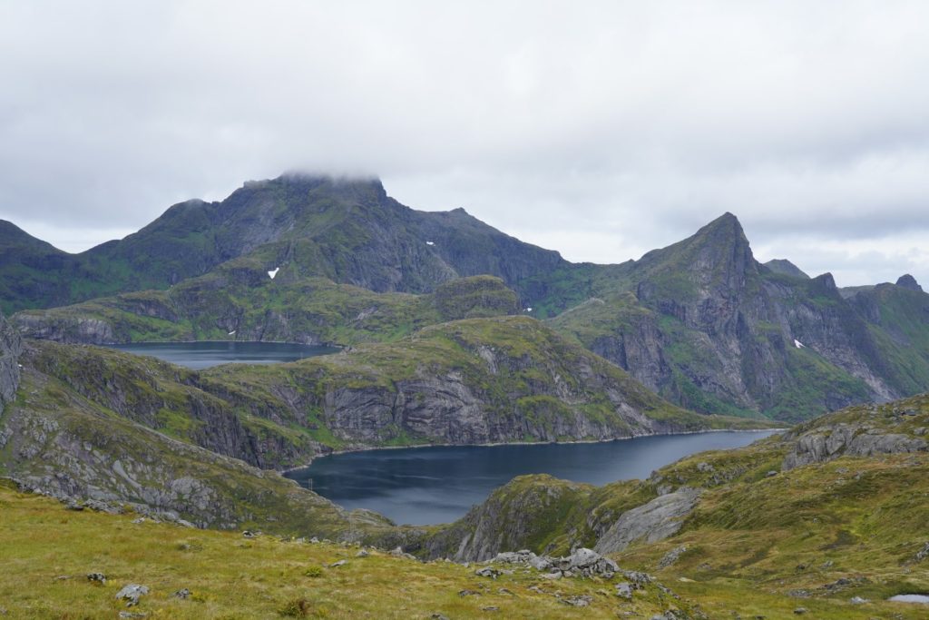 Der Regen hat sich grösstenteils zurückgehalten und ich entschied mich dem Weg, solange es gut machbar ist, zu folgen. Ich musste wieder ein Stück absteigen und kam dabei an ein paar wunderschönen Seen vorbei.  Nach einiger Zeit kamen mir drei Typen, vermutlich in etwa demselben Alter, in Strassenschuhen und ohne Rucksack entgegen. Das Zelt bei der Hütte war ihres.