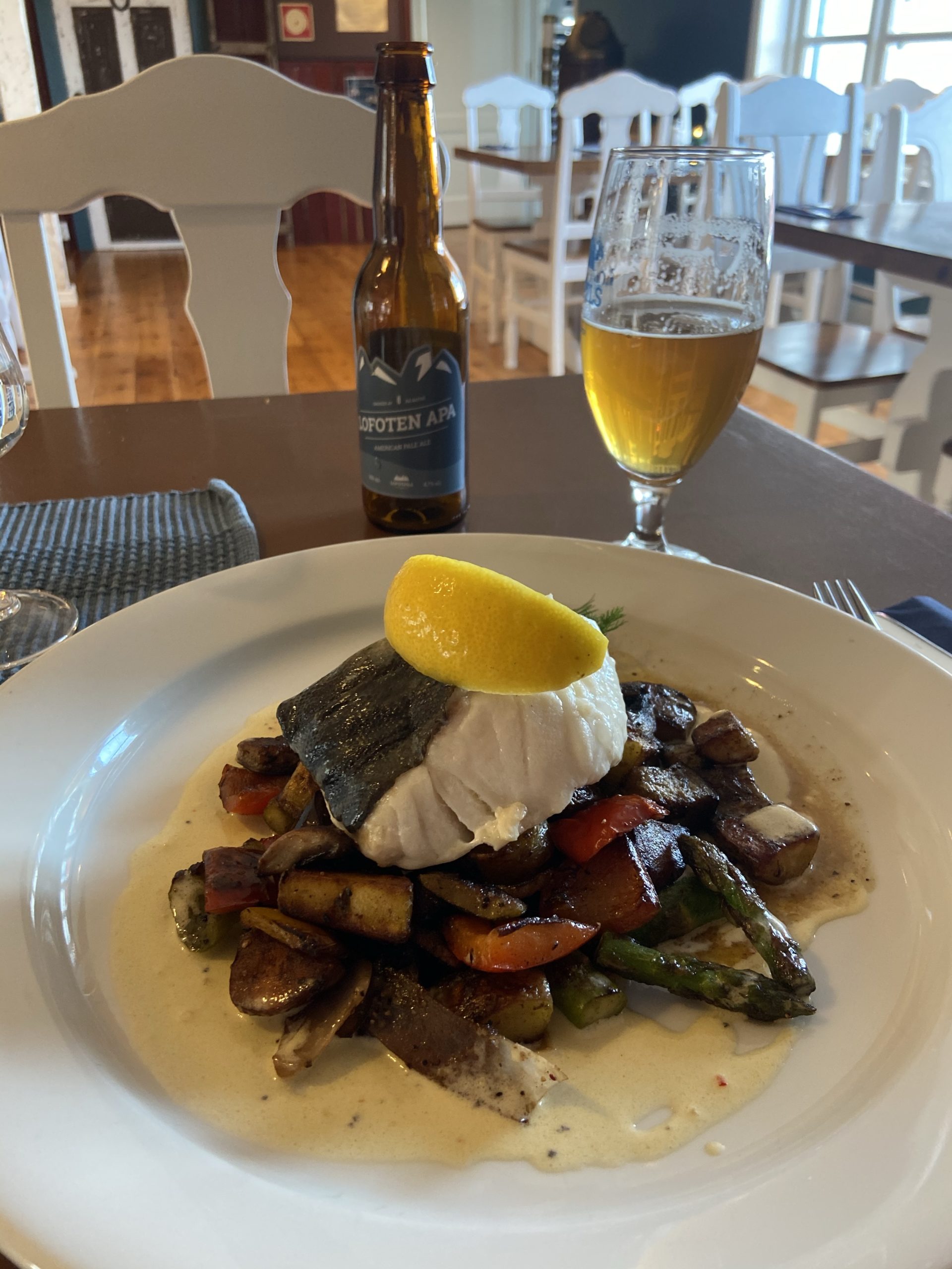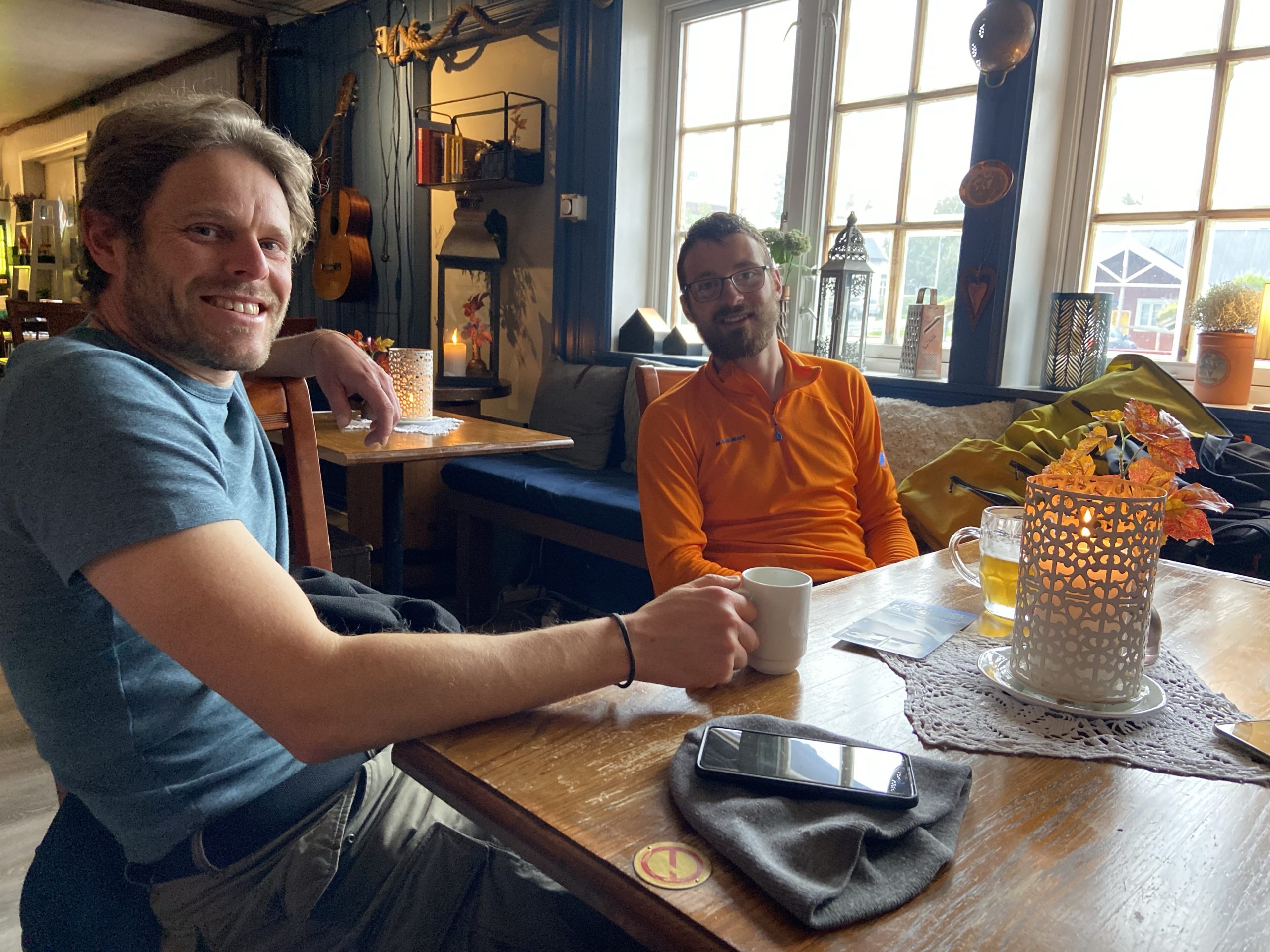 Zurück in Reine angekommen, lud ich die beiden noch kurz ins Bistro ein. Ich selbst bestellte mir ein dringend notwendiges Bier und eine Pizza und wir unterhielten uns einige Zeit.